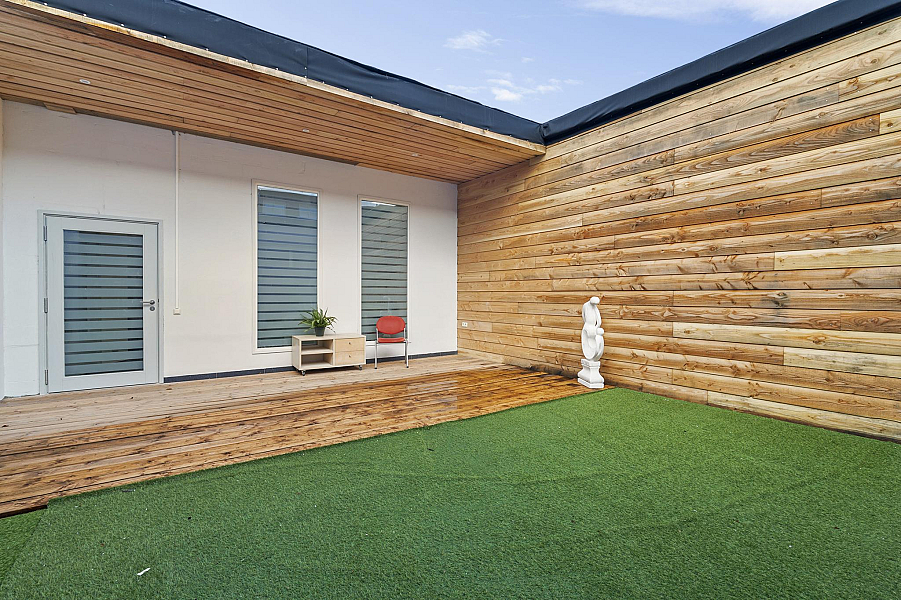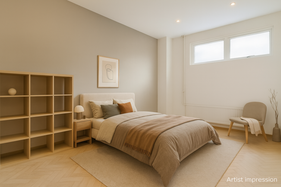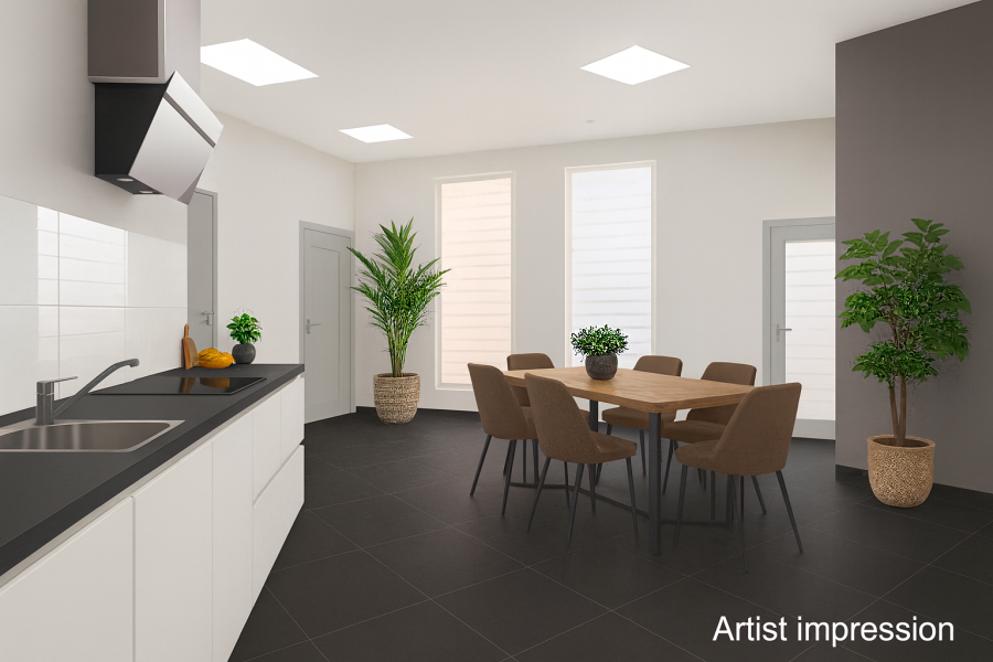 De indeling is royaal en doordacht. Vanuit de woonkamer loop je door naar een lichte multifunctionele kamer met royale lichtkoepel – ideaal als derde slaapkamer, werk- of hobbyruimte. Verder vind je een modern gastentoilet, een aparte wasruimte en de absolute eyecatcher: de gloednieuwe woonkeuken van maar liefst 65 m². Een plek waar koken, tafelen en gezellig samenzijn moeiteloos samengaan. Via de openslaande deur stap je zo de beschutte stadstuin in van ca. 20 m². Achter het gebouw is bovendien een parkeerplaats mogelijk.