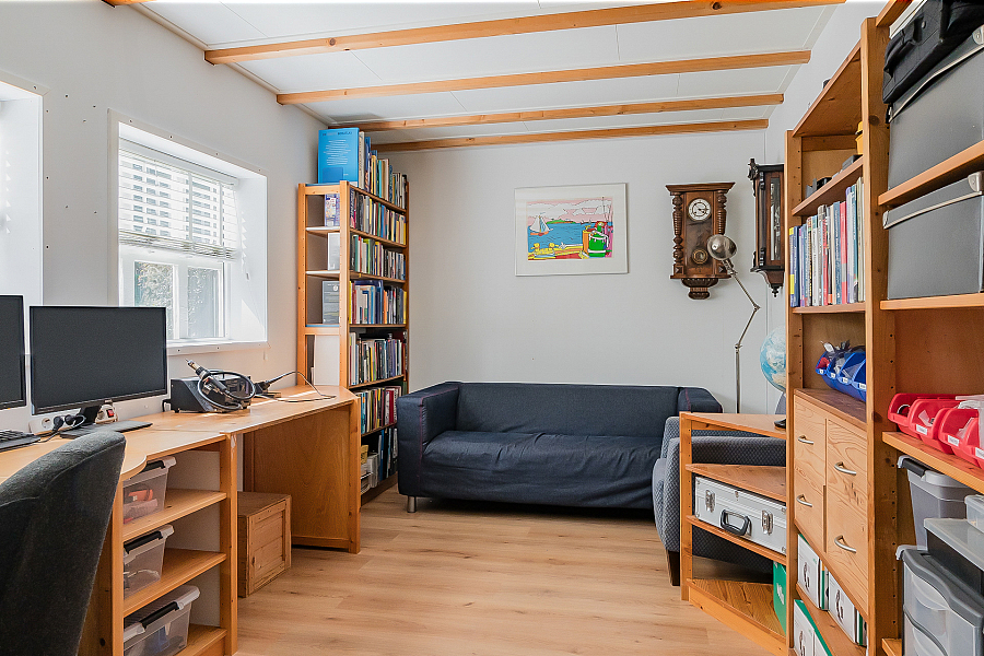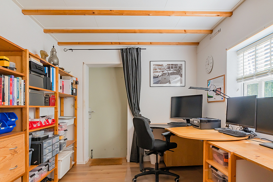 Hobbyruimte en berging, nu in gebruik als kantoor.