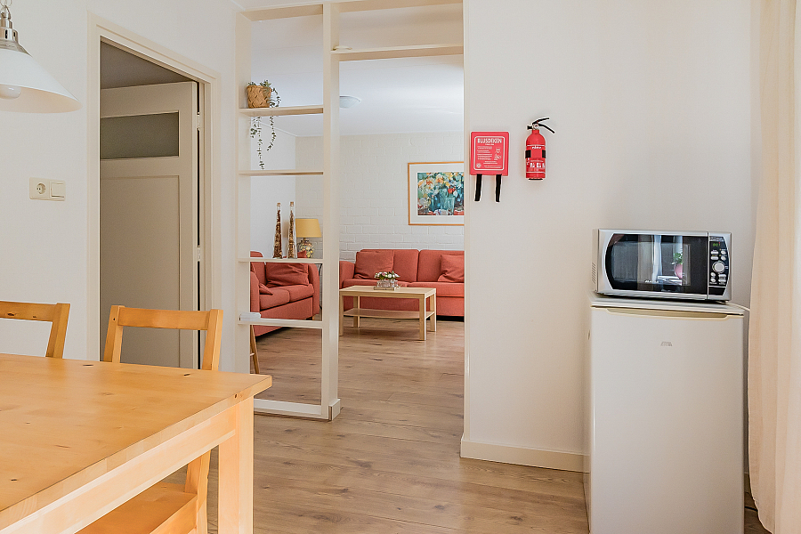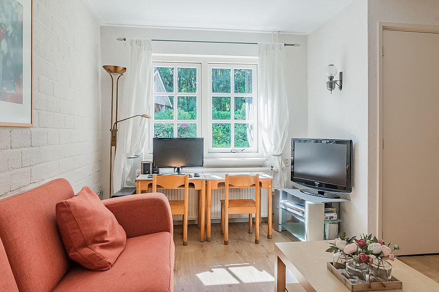 Het gastenverblijf is een comfortabele kleine woning met een eigen cv-installatie.