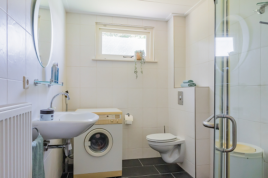 Begane grond: entree, meterkast, ruime woonkamer, moderne keuken, 2 slaapkamers en moderne badkamer voorzien van douchecabine, wastafel en wandcloset.