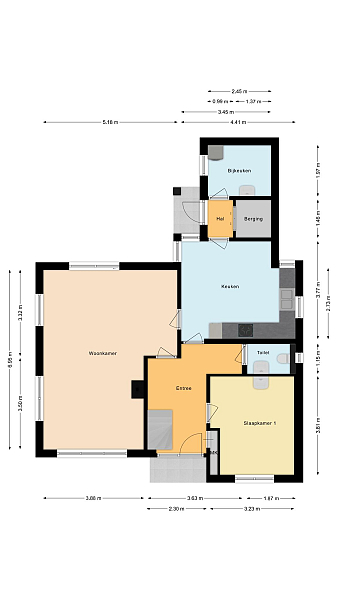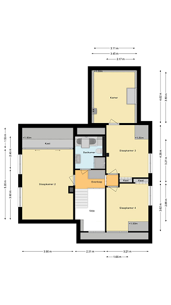 * De overig inpandige ruimte bedraagt ca. 16 m2;