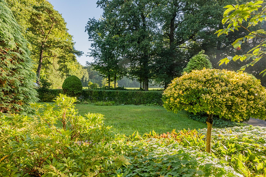 * Fraai aangelegde tuin met diverse terrassen en gazons;