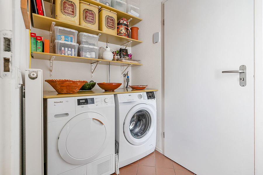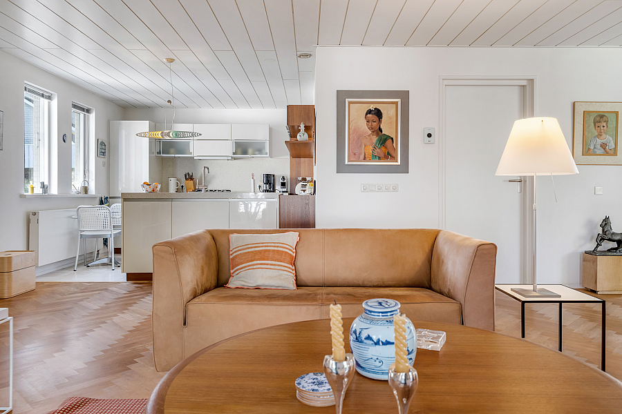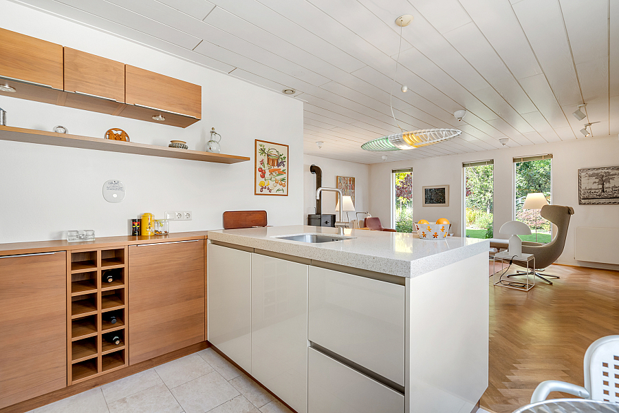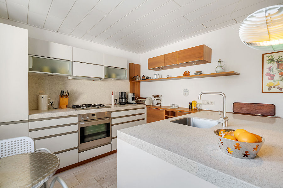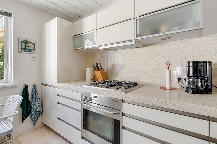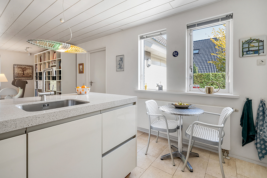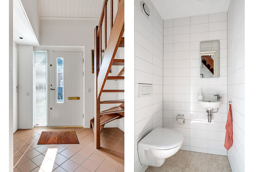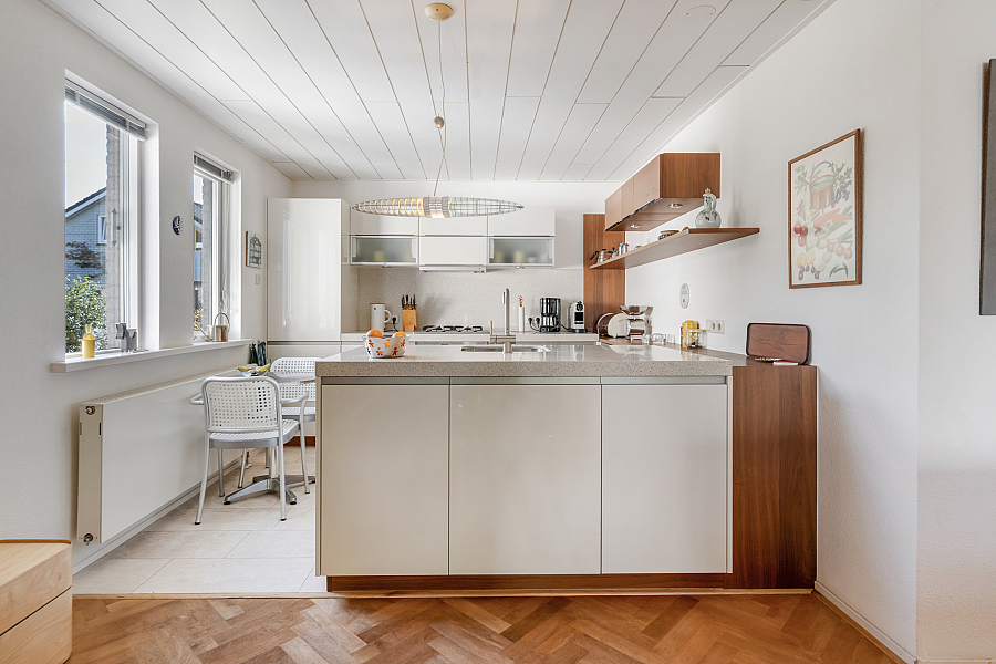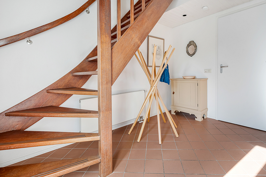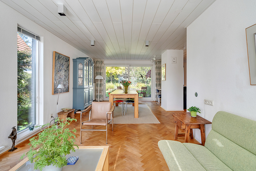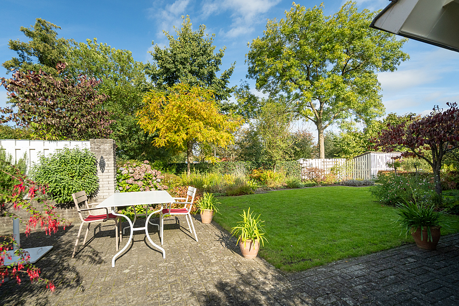 Bij binnenkomst valt direct de lichte en ruime woonkamer op, voorzien van een sfeervolle parketvloer en haardpartij en grote ramen die zorgen voor een prettige verbinding met de tuin. De open keuken is uitgerust met diverse inbouwapparatuur en grenst aan de eethoek, vanwaar u via de schuifpui zo het terras met extra zithoek opstapt. Een heerlijke plek om lange zomeravonden door te brengen. De praktische bijkeuken met wasmachine- en drogeraansluiting en een extra entree biedt toegang tot de inpandige garage met dubbele deur.