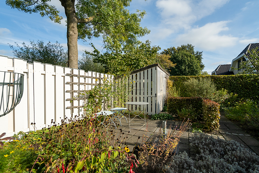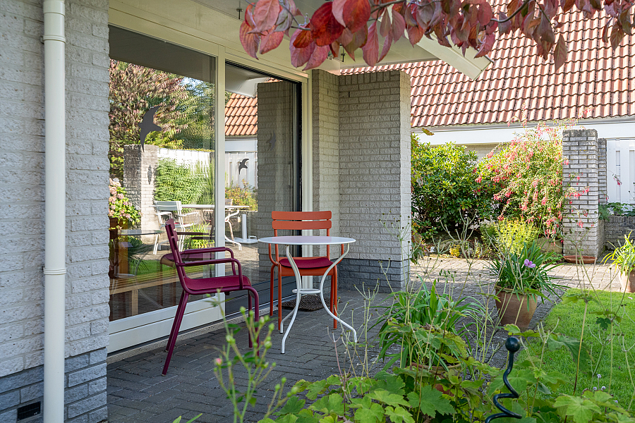 De woning ligt heerlijk in het groen van de tuin rondom met verschillende terrassen, een overdekte zithoek en veel privacy. Een perfecte plek om te ontspannen en te genieten van het buitenleven.