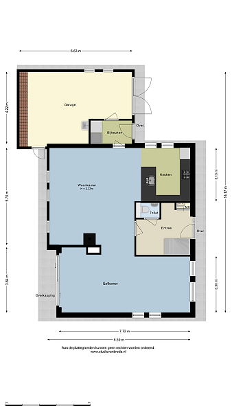 * De perceeloppervlakte bedraagt ca. 561 m²;