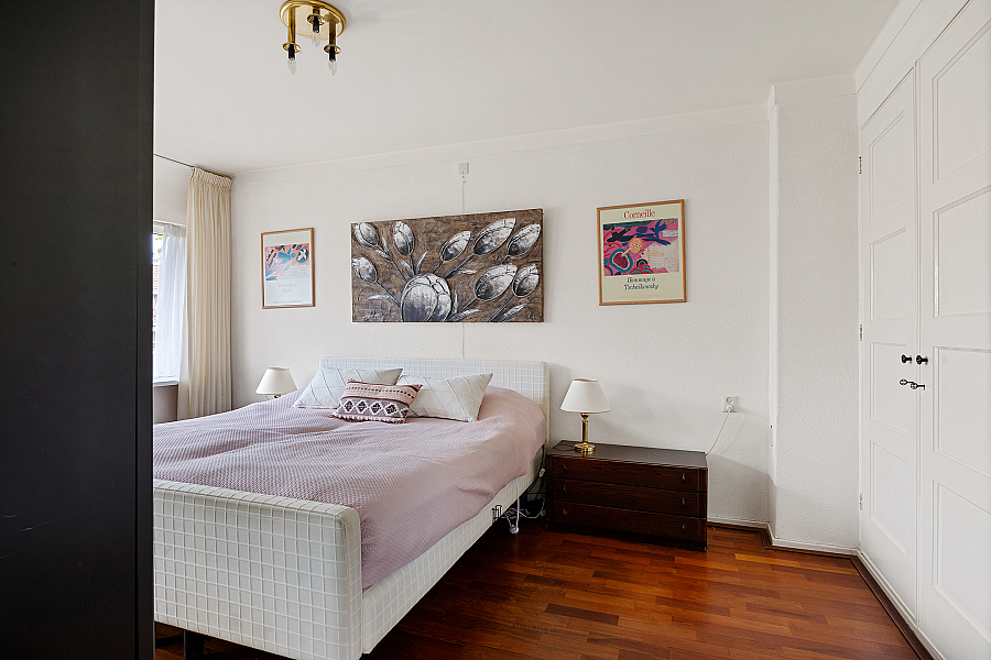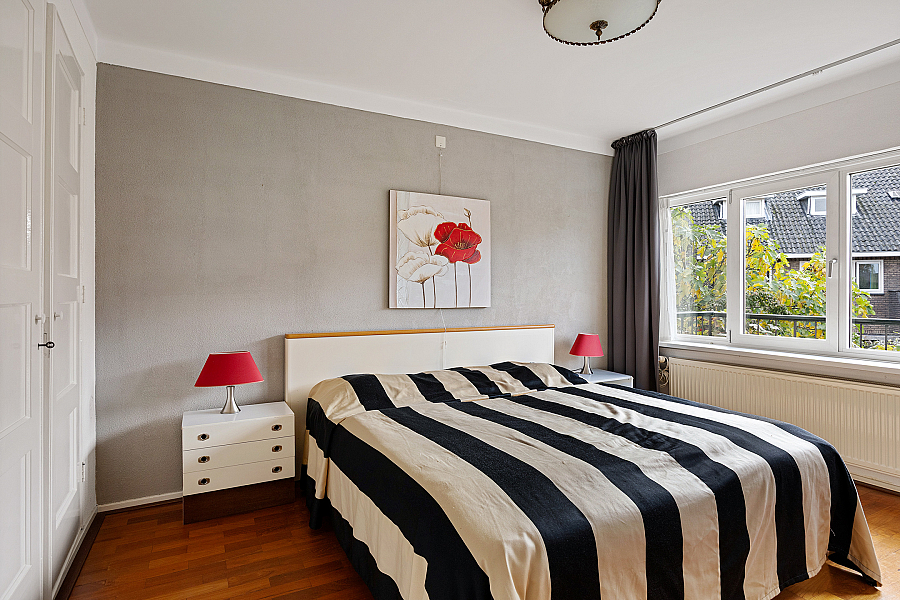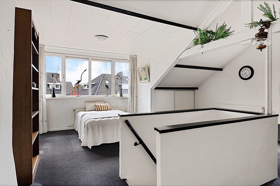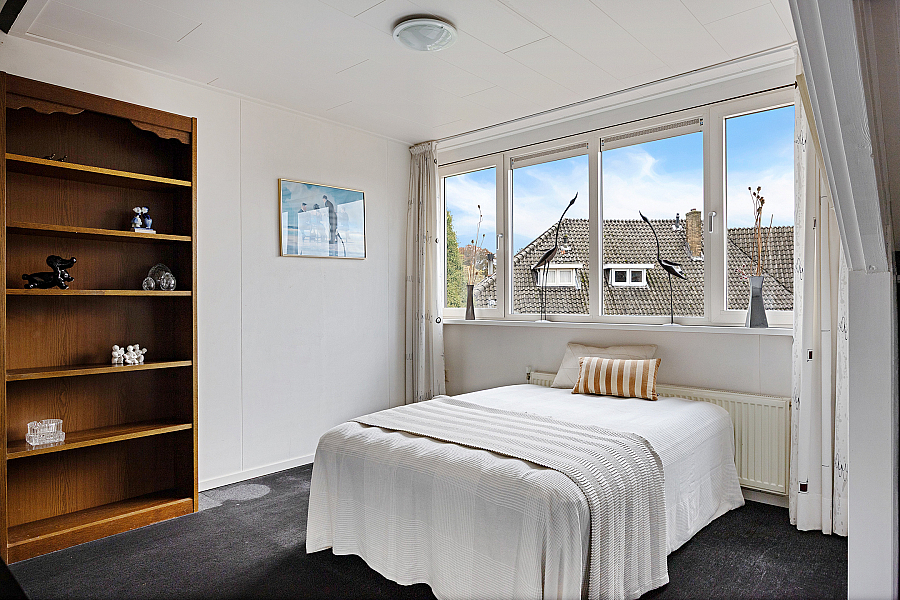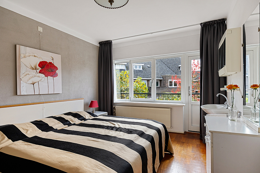 Op de eerste verdieping zijn drie slaapkamers, waarvan de achterste met toegang tot het balkon. De badkamer is modern afgewerkt en beschikt over vloerverwarming, een douche, wastafelmeubel en tweede toilet. Via een vaste trap bereik je de tweede verdieping met een extra (slaap)kamer, een dakkapel en bergruimte; ideaal voor logees, een werkkamer of hobbyruimte.