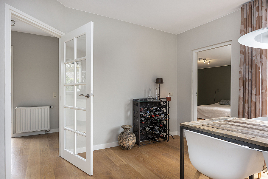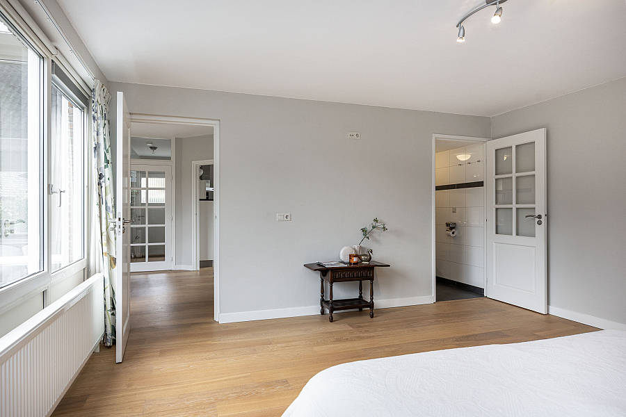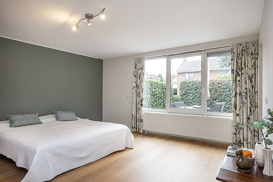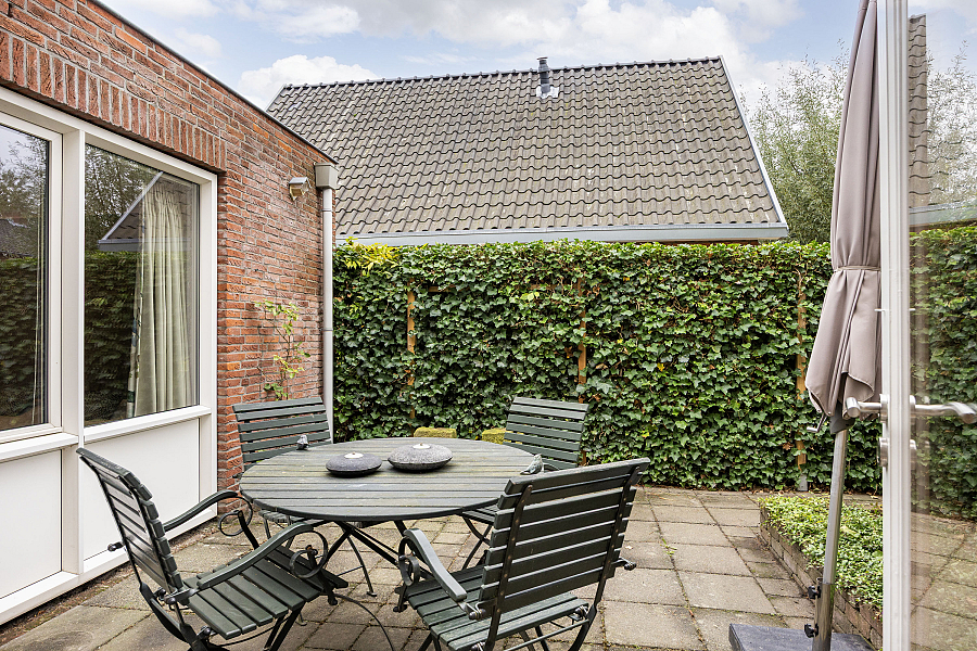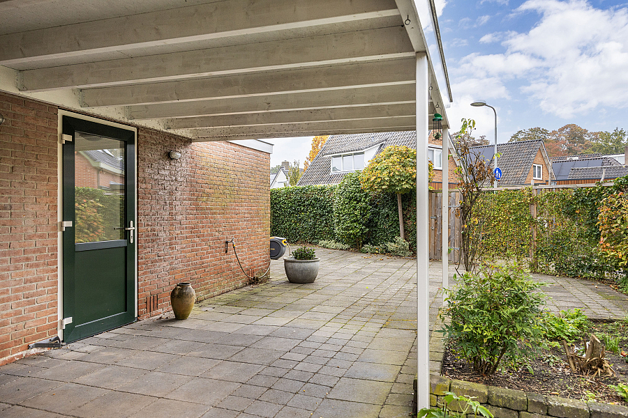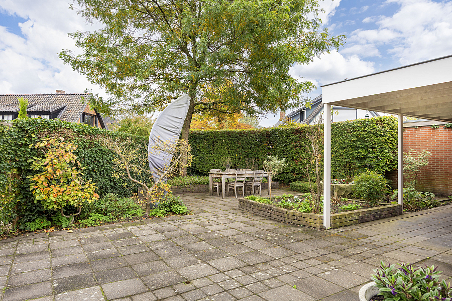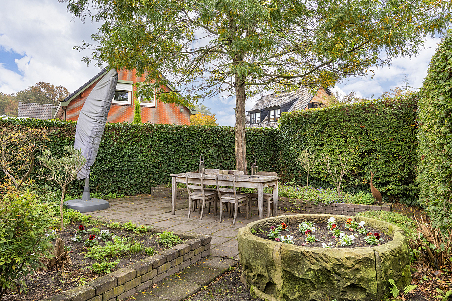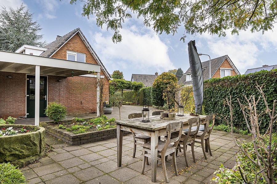 De grote raampartijen zorgen voor een prettige daglichtbeleving en een fijne verbinding met buiten. Rondom de woning vindt u meerdere terrassen, een beschutte patio direct aan de woonkamer is een heerlijke plek voor koffie in de ochtendzon en een overkapping om vroeg in het voorjaar of juist ’s avonds lang buiten te zitten. De tuin is onderhoudsarm aangelegd met hagen voor privacy en een achterom. Parkeren kan op eigen terrein: de brede oprit biedt plek aan drie auto’s. Het gezellige oude centrum van Delden is letterlijk op loopafstand, het gezondheidscentrum ligt om de hoek en ook landgoed Twickel is snel te bereiken. Andere voordeel van wonen in Delden zijn het treinstation, dichtbij de uitvalswegen en de gemoedelijkheid door een mooie mix van noaberschap en een groot gevoel van welzijn.