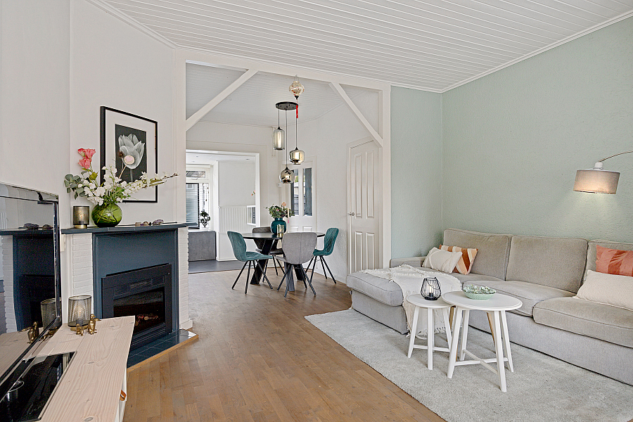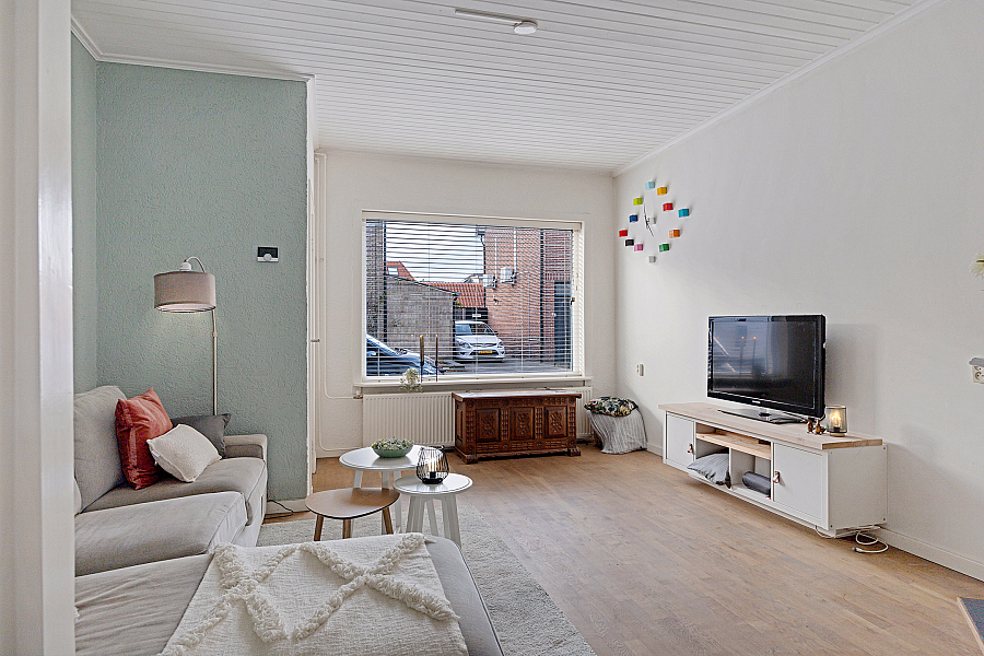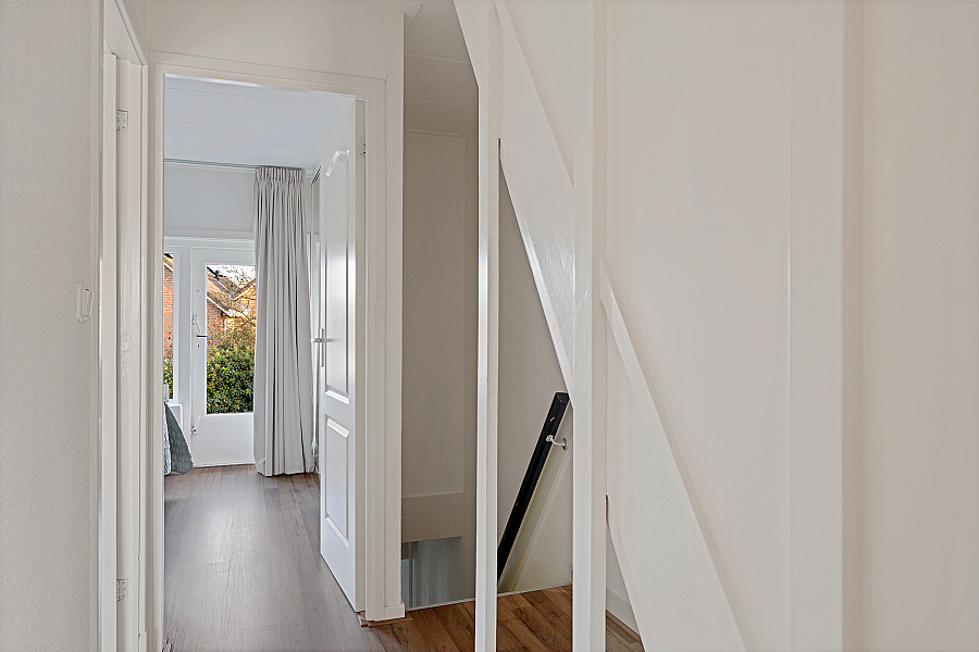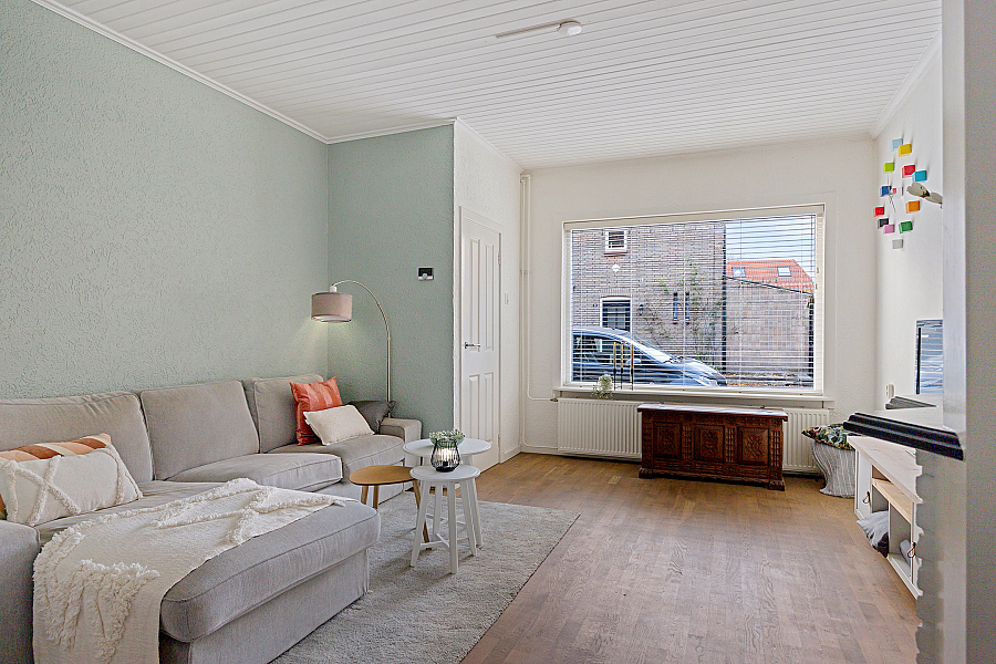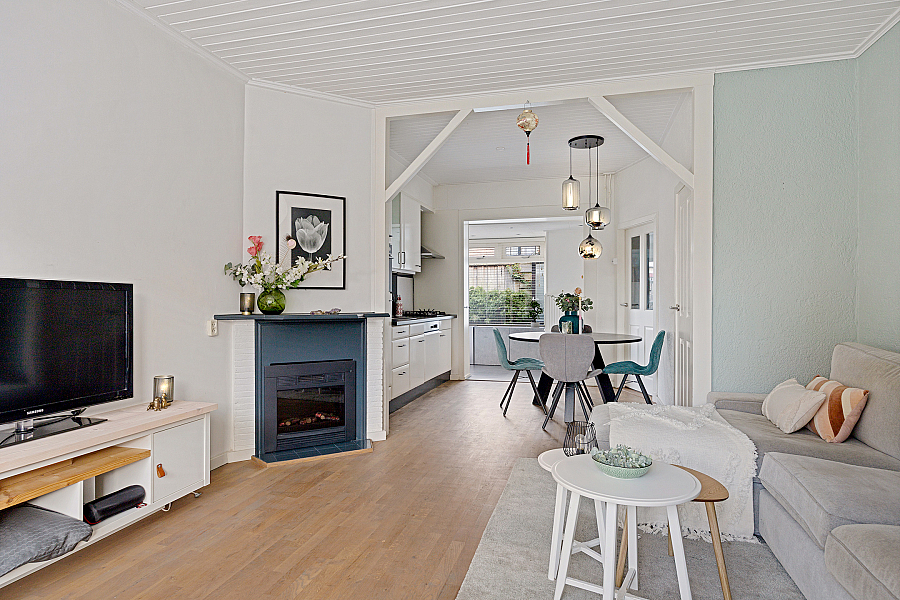 Het huis zelf is een hoekwoning gebouwd in 1934 met een woonoppervlakte van 95 m2. De glaspartijen zijn deels dubbelglas en het huis heeft energielabel F. Binnen is alles goed onderhouden: de woning is voorzien van een tv-kabel, glasvezel en koel, natuurlijke ventilatie. Met drie slaapkamers en een totaal van vier kamers biedt het huis voldoende leefruimte.