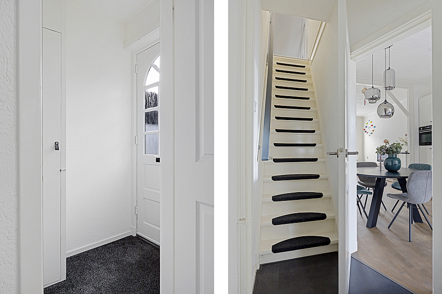 Entree, voorportaal met meterkast, ruime woonkamer, trapkast, sfeervolle woonkeuken, hal, trapopgang naar de eerste verdieping, toilet, badkamer met inloopdouche.
