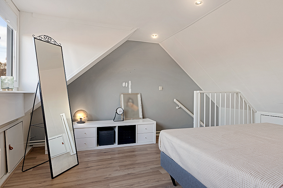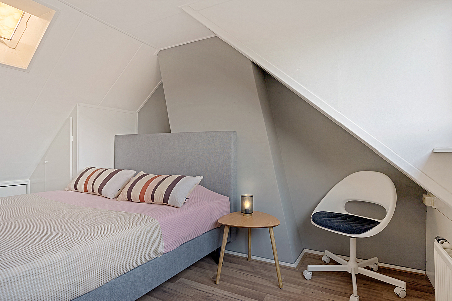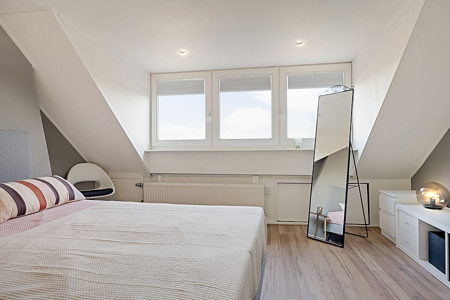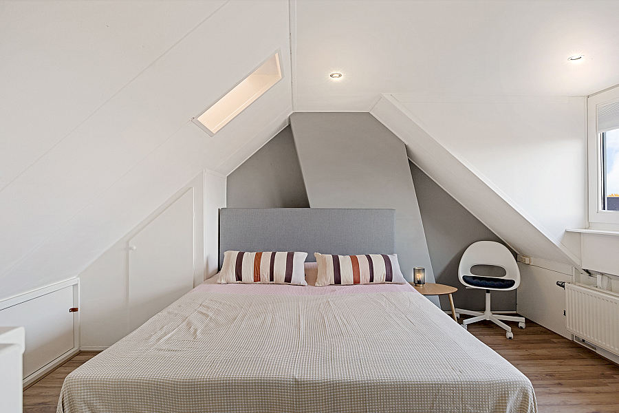 Bereikbaar via vaste trap alwaar de 3e (!) slaapkamer is gesitueerd, deze ouderslaapkamer biedt voldoende ruimte voor een royaal 2-persoonsbed, dit wordt mogelijk gemaakt door de grote dakkapel welke veel ruimte en licht biedt. Daarnaast is achter de knieschotten voldoende bergruimte.