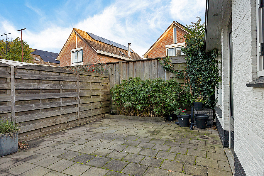 De achtertuin met achterom is aangelegd in een speelse combinatie van bestrating, borders en beplanting. De tuin is gelegen op het zuidoosten, je kan hier dus heerlijk genieten van de zon. Aangesloten aan de woning is ook nog een stenen berging aanwezig, deze dient als bergplaats voor tuinartikelen, gereedschap en het droogstallen van fietsen. Tevens is dit de opstelplaats voor de gewenste witgoedapparaten en de CV-ketel, een Remeha ketel uit 2020 in eigendom.