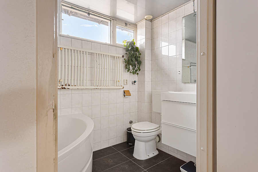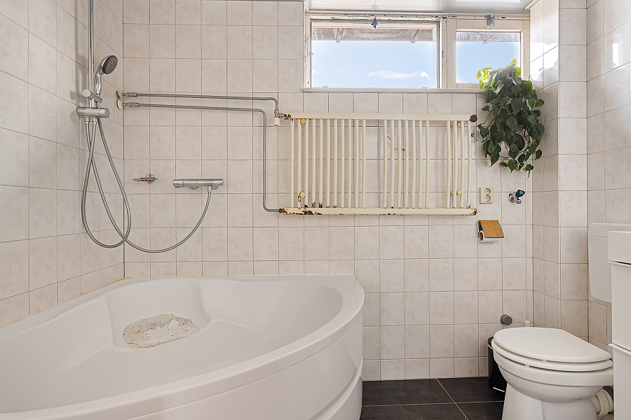 Op de eerste verdieping bevinden zich drie slaapkamers, een overloop en een nette badkamer met hoekbad, douche, wastafelmeubel en tweede toilet.