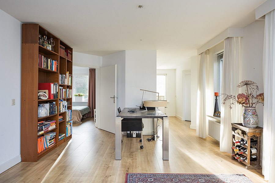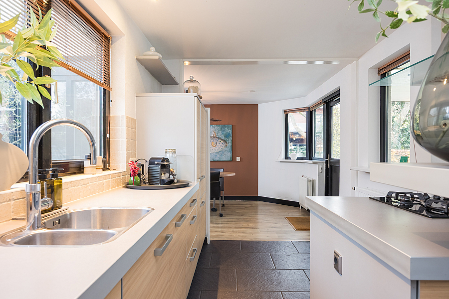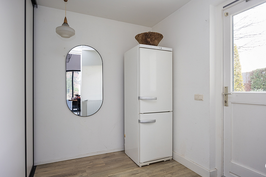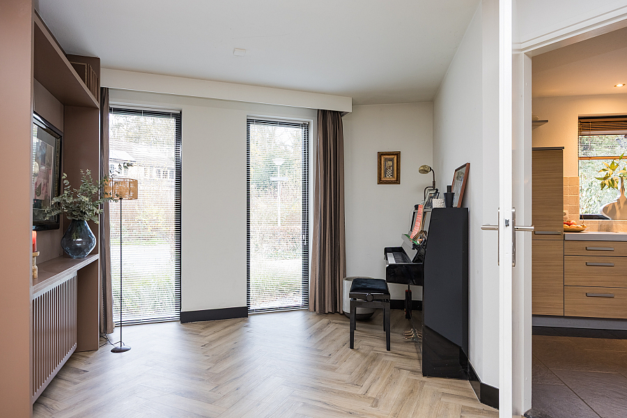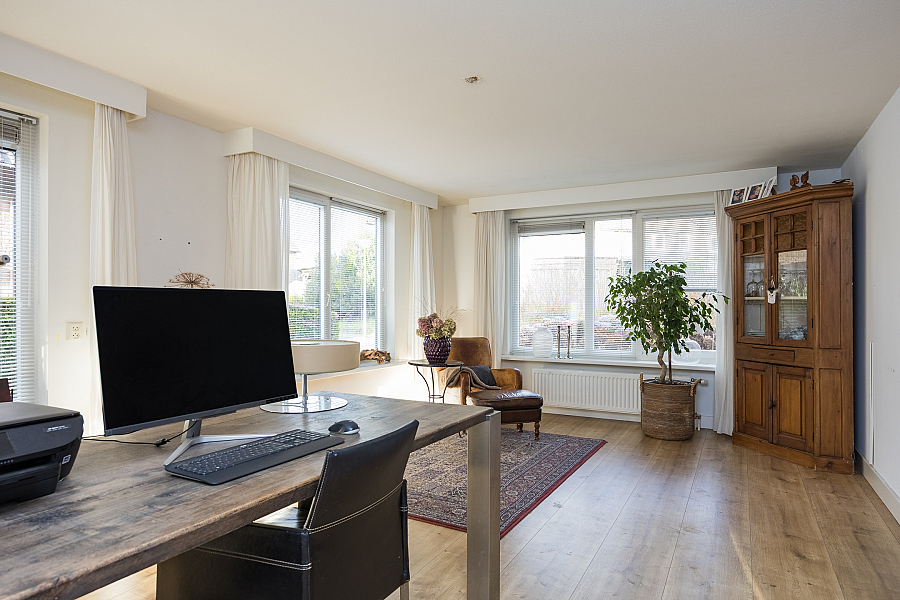 Een groot pluspunt van deze woning is de extra, zelfstandige ruimte, die uitermate geschikt voor inwoning van ouders of (volwassen) kinderen. Het beschikt over een lichte woonkamer, een halfopen keuken en een slaapkamer met badkamer. Er is zelfs een bijkeuken en een eigen entree. Uiteraard is het ook prima als kantoor aan huis, praktijk- of salonruimte in te richten. Deze ruimte is direct toegankelijk vanuit de woning en biedt volop mogelijkheden voor wie wonen en werken wil combineren. Wil je het liever voor je eigen woongenot gebruiken dan is het ideaal voor levensloopbestendig wonen. Deze kamer heeft een directe verbinding met een eigen badkamer die is uitgerust met een inloopdouche, toilet en wastafel.