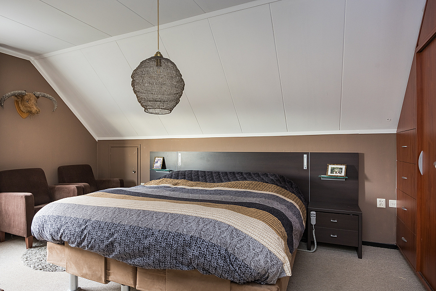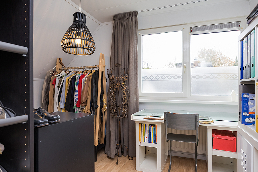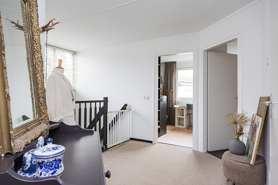 Via een vaste trap bereik je de riante zolder, verdeeld over twee grote ruimten. Deze verdieping biedt enorm veel opbergmogelijkheden en is perfect voor het bewaren van bijvoorbeeld winterkleding, seizoensdecoratie of sportspullen. De ruimte is netjes afgewerkt en kan desgewenst ook anders worden benut.