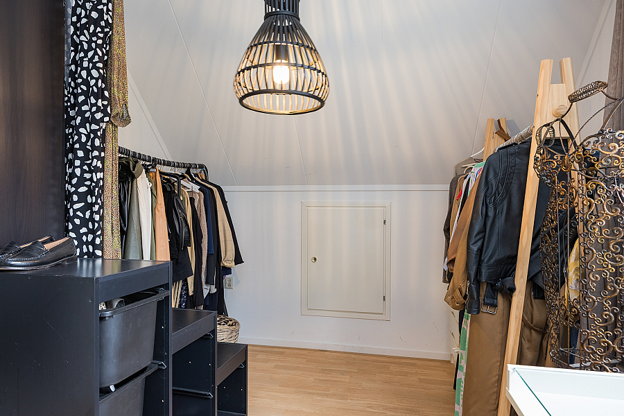 Riante zolder, verdeeld over twee ruimten, met volop opbergmogelijkheden,