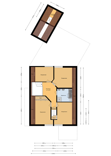 * De inhoud van de woning bedraagt ca. 872 m³;