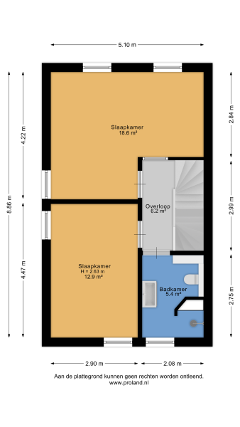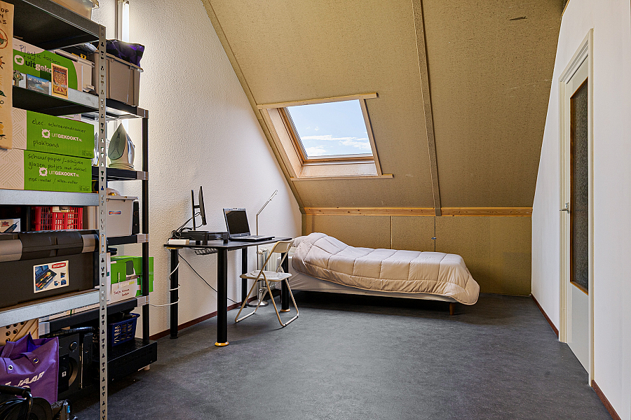 2e verdieping: overloop, 3e slaapkamer met Veluxraam, cv-opstelling met 250-liter boiler en bergruimte.