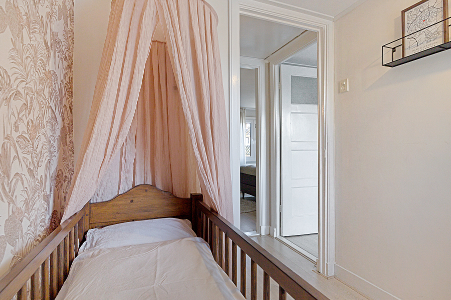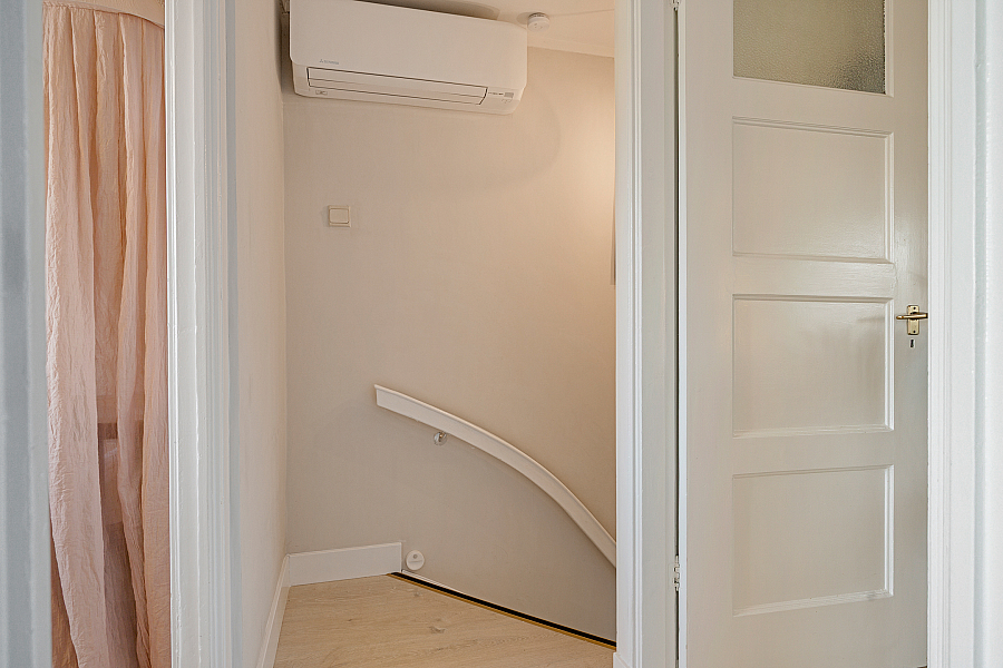 Op de eerste verdieping tref je drie slaapkamers. Dankzij de dakkapellen valt er veel licht naar binnen. Over het binnenklimaat hoef je je geen zorgen te maken: de aanwezige airco koelt de gehele bovenverdieping in de zomer en verwarmt deze behaaglijk in de winter. Heb je nog meer spullen? Geen probleem: de woning beschikt over een kelder én een zolderberging.