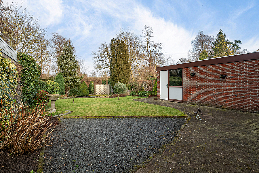 De tuin ligt op het noorden en biedt volop mogelijkheden om deze naar eigen smaak in te richten. Daarnaast beschikt de woning over een aangebouwde halfsteens garage, een carport en een oprit met ruimte voor maar liefst drie auto’s.
