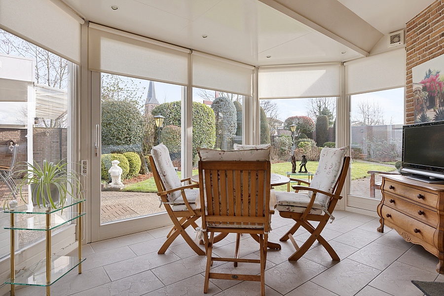 en extra kasten, serre met vloerverwarming en schuifpui.