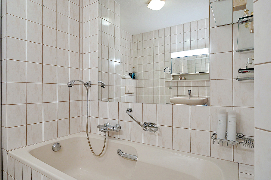 Begane grond: royale hal, toilet, slaapkamer met badkamer met bad, toilet, wastafel, douchecabine, lichte woonkamer met schuifpui en gashaard, woonkeuken, bijkeuken met wasapparatuuraansluitingen en aanrecht met spoelbak met boiler