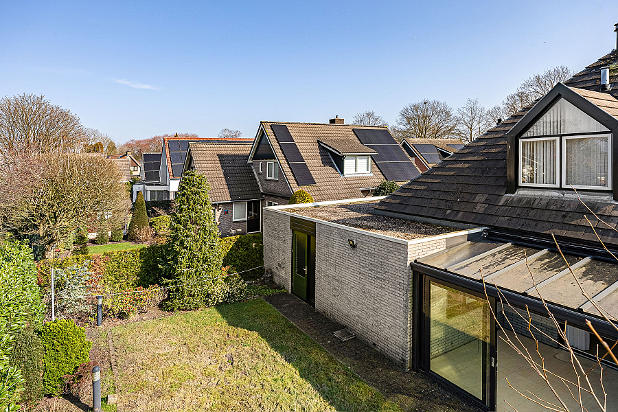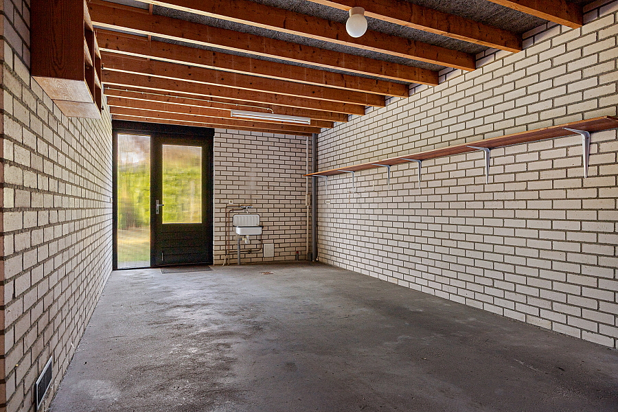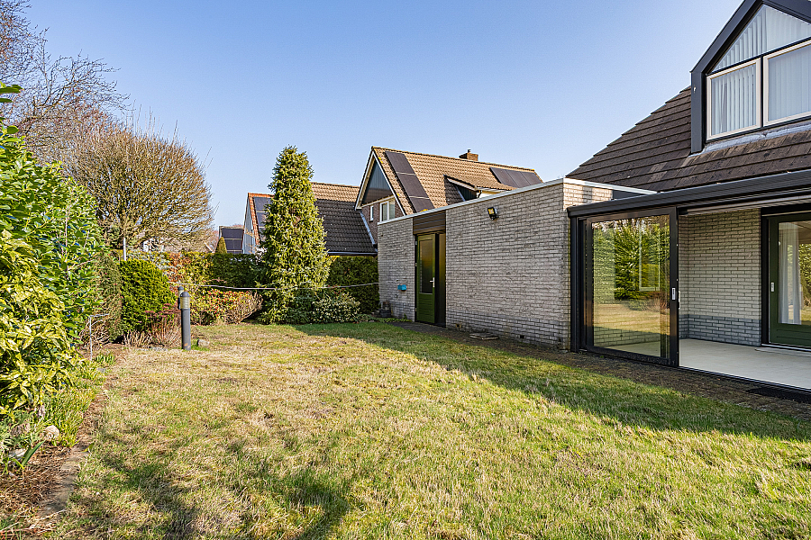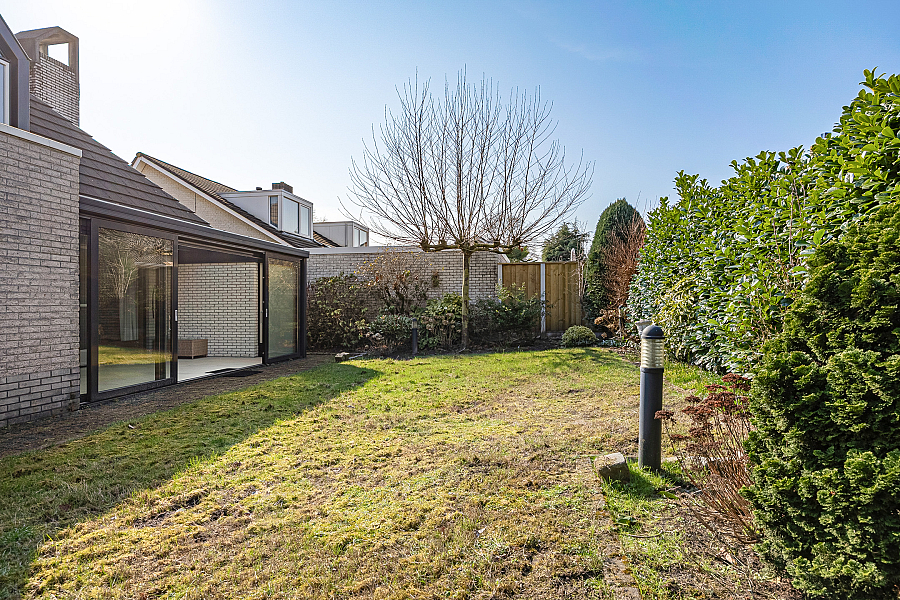 Buiten vind je een achtertuin met gazon, een prettige mate van privacy en voldoende ruimte om van het buitenleven te genieten. De serre vormt daarbij een mooie schakel tussen binnen en buiten. Aan de voorzijde is er een oprit voor één auto en toegang tot de ruime garage. Die is netjes, droog en praktisch ingericht, met uitstortgootsteen, water en elektra.