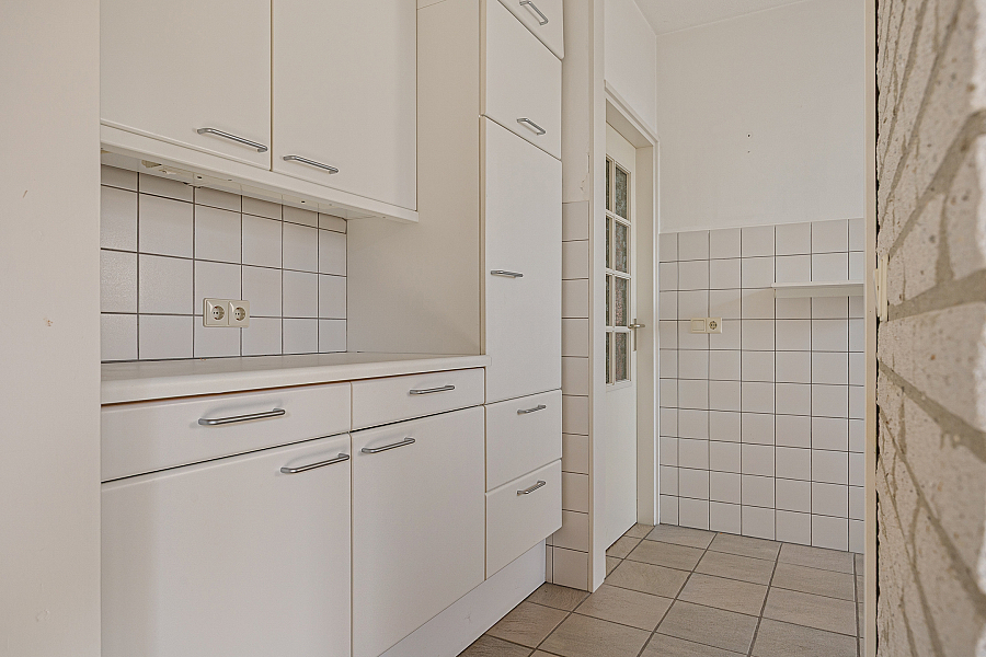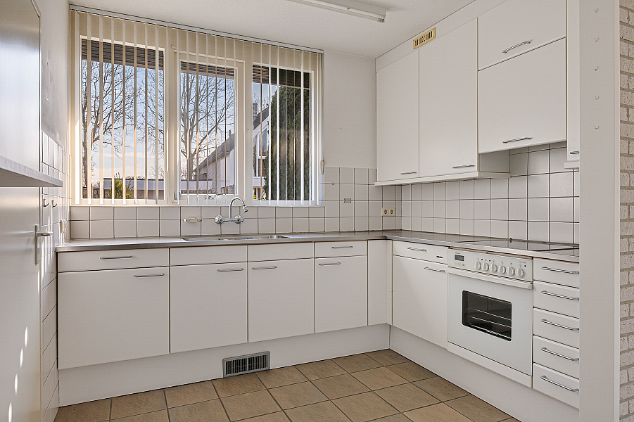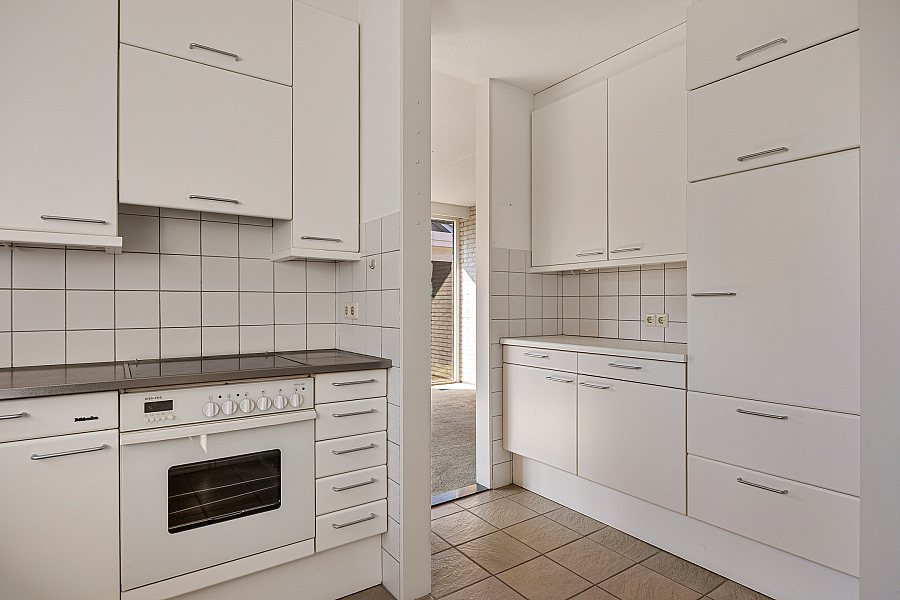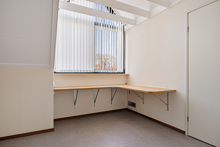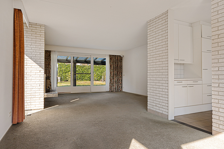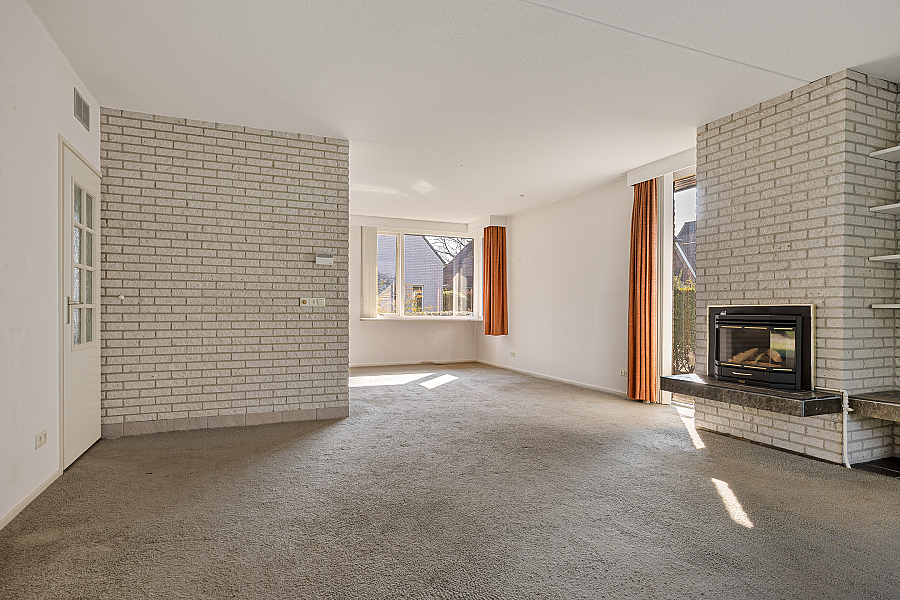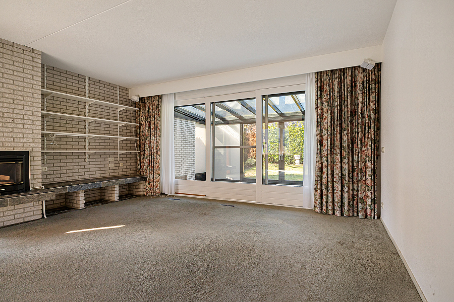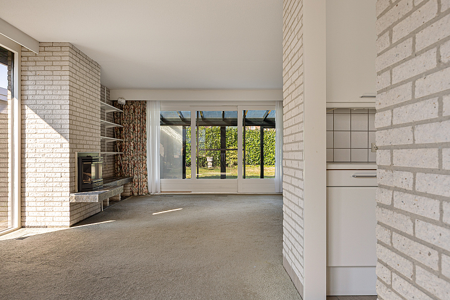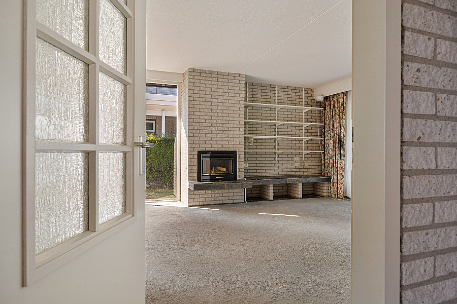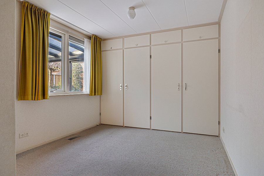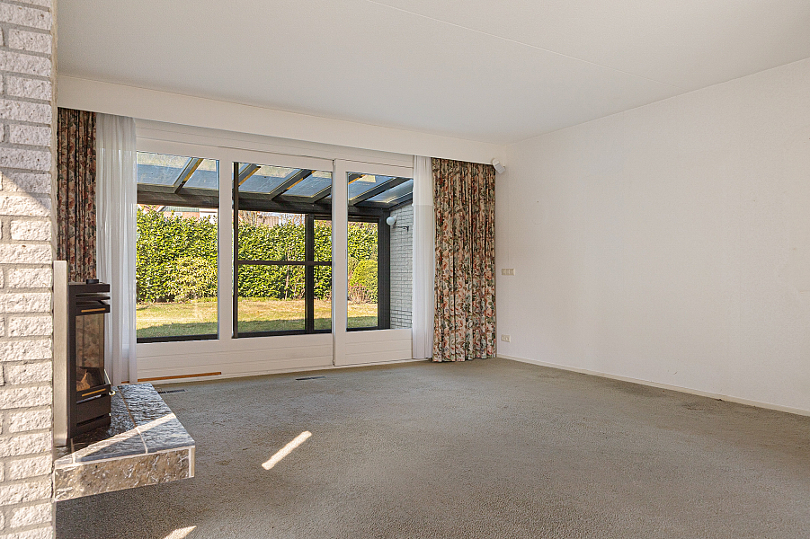 De woonkamer is royaal van opzet en biedt volop ruimte voor een comfortabele zithoek en een eethoek. Dankzij de grote raampartijen valt het daglicht prettig naar binnen. In de zithoek zorgt de gashaard voor extra sfeer. Vanuit de woonkamer loop je via de schuifpui zo de serre in, een fijne extra ruimte die direct in verbinding staat met de tuin. De keuken is gesloten en grenst aan een praktische provisieruimte. Deze opzet is functioneel en biedt volop mogelijkheden voor wie de woning graag naar deze tijd wil brengen. Op de begane grond bevindt zich verder een slaapkamer met vaste kasten en een aangrenzende badkamer. Daarmee is de woning ook geschikt voor wie graag levensloopbestendig woont.