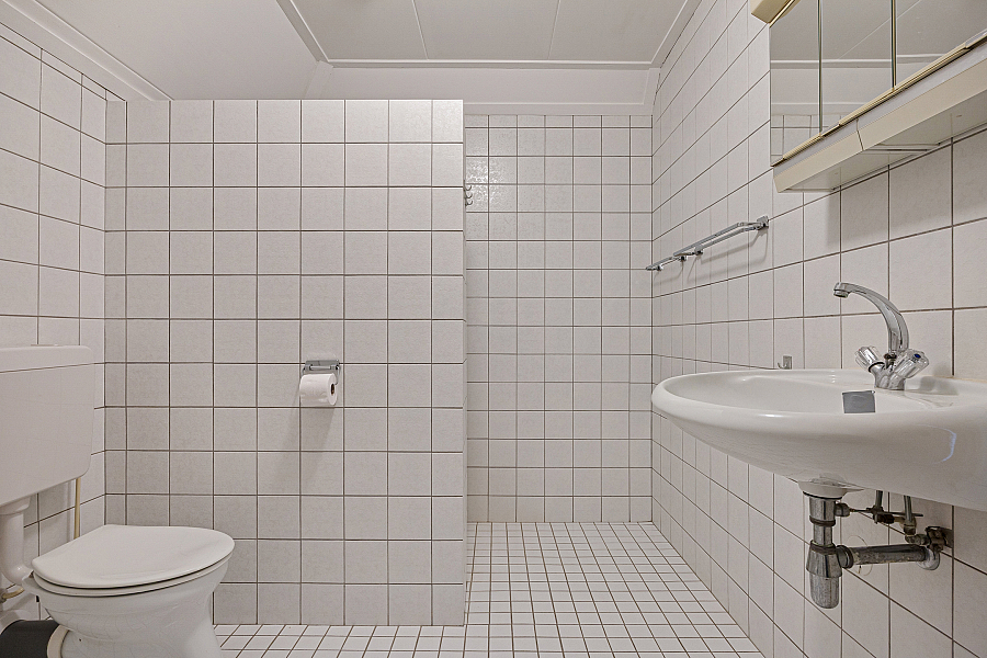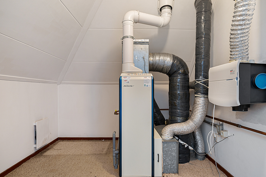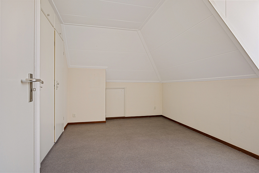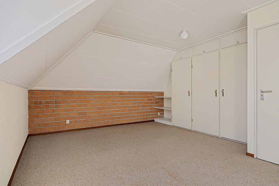 Op de verdieping zijn nog twee slaapkamers aanwezig, beide met vaste kastruimte en extra bergruimte onder de kap. De slaapkamer aan de voorzijde is opvallend ruim en voorzien van een dakkapel. Daarnaast is er een tweede badkamer met douche, toilet en wastafel. Ook de stookruimte is royaal en biedt extra plek voor opslag.