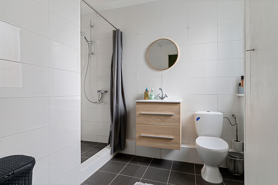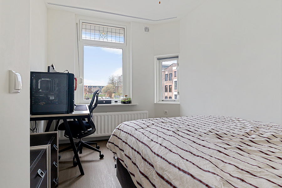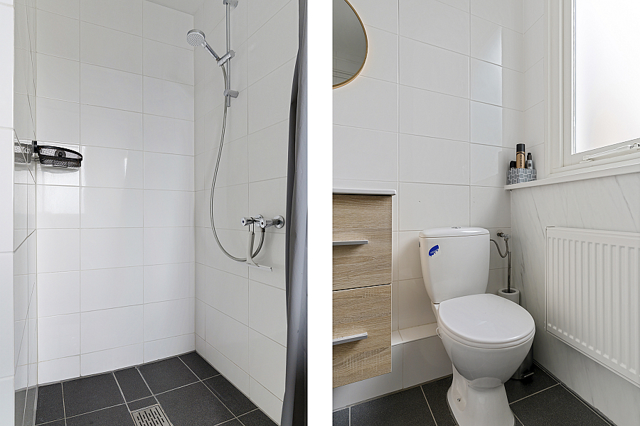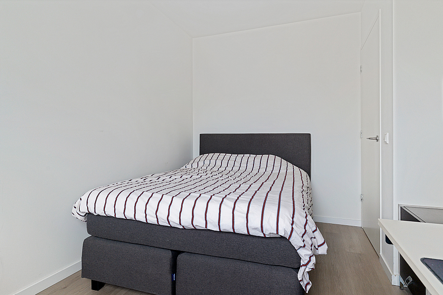 De slaapkamer is comfortabel ingericht en voorzien van vloerverwarming en een extra radiator. Ook de badkamer is modern afgewerkt en beschikt over een wastafelmeubel, douchehoek en toilet. Daarnaast is er een aparte ruimte voor de wasmachine en beschikt u over een eigen berging op de begane grond.