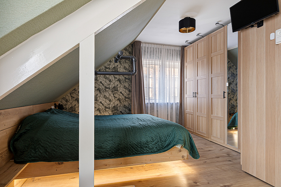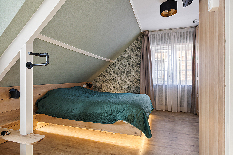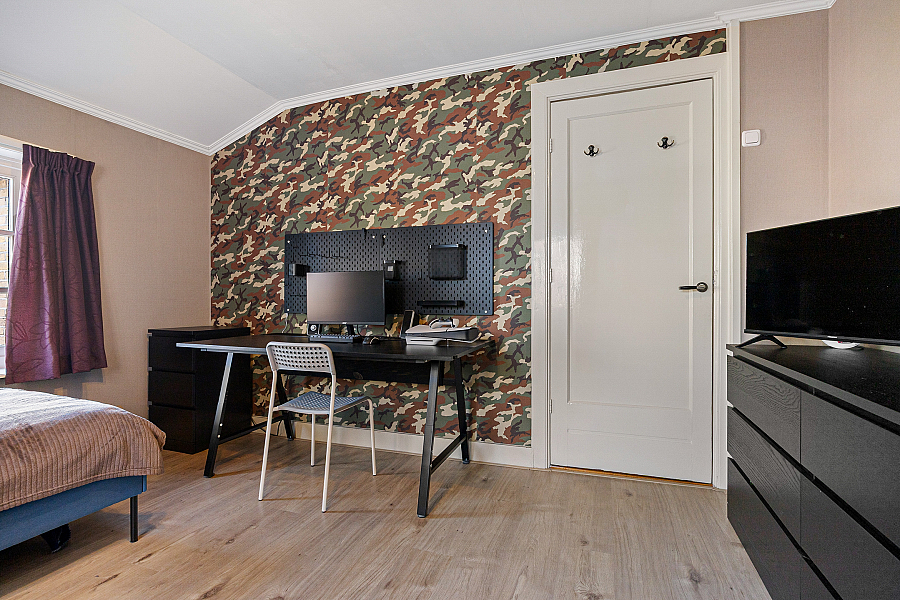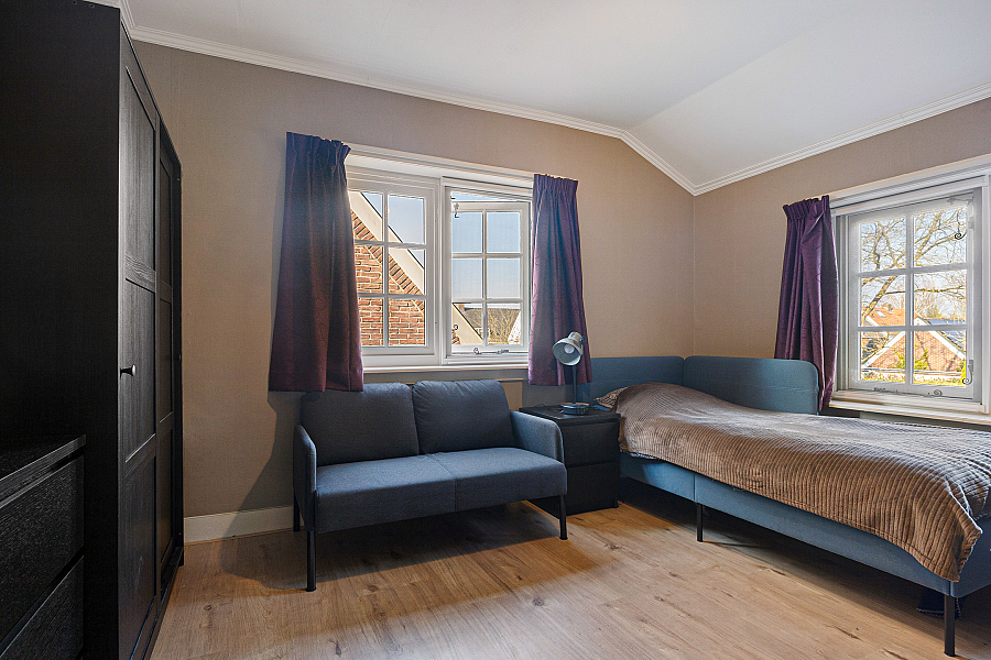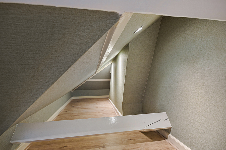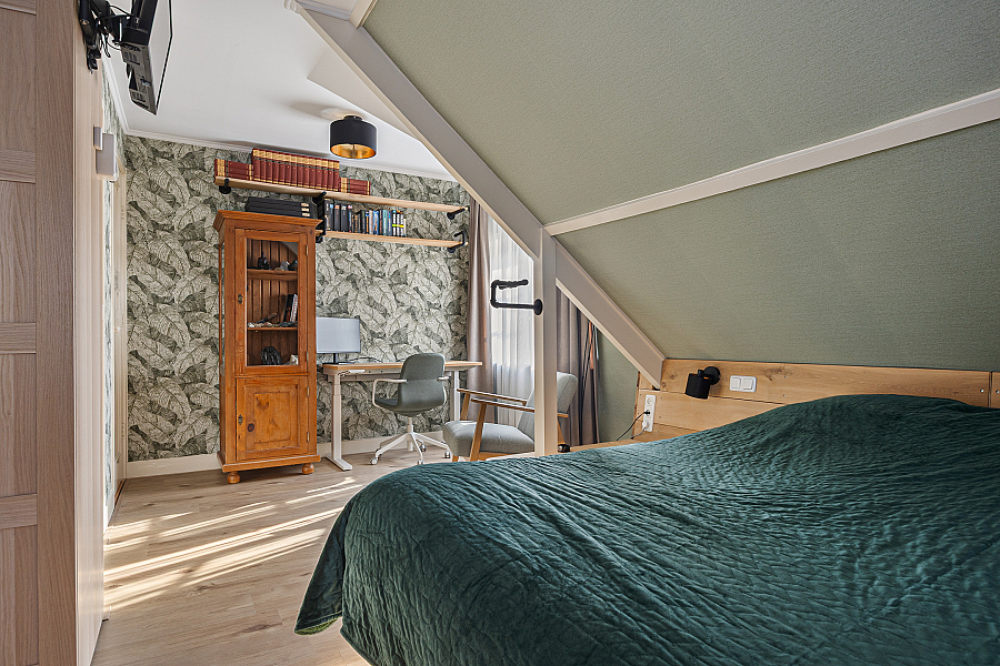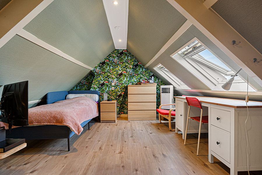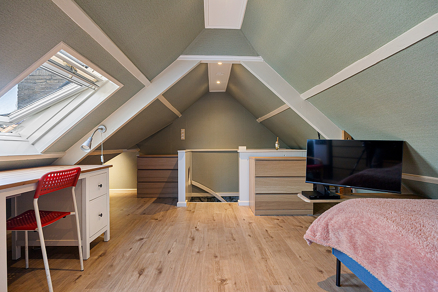 Via een vaste trap bereikbare verdieping met overloop, bergruimte en een (derde) slaapkamer.