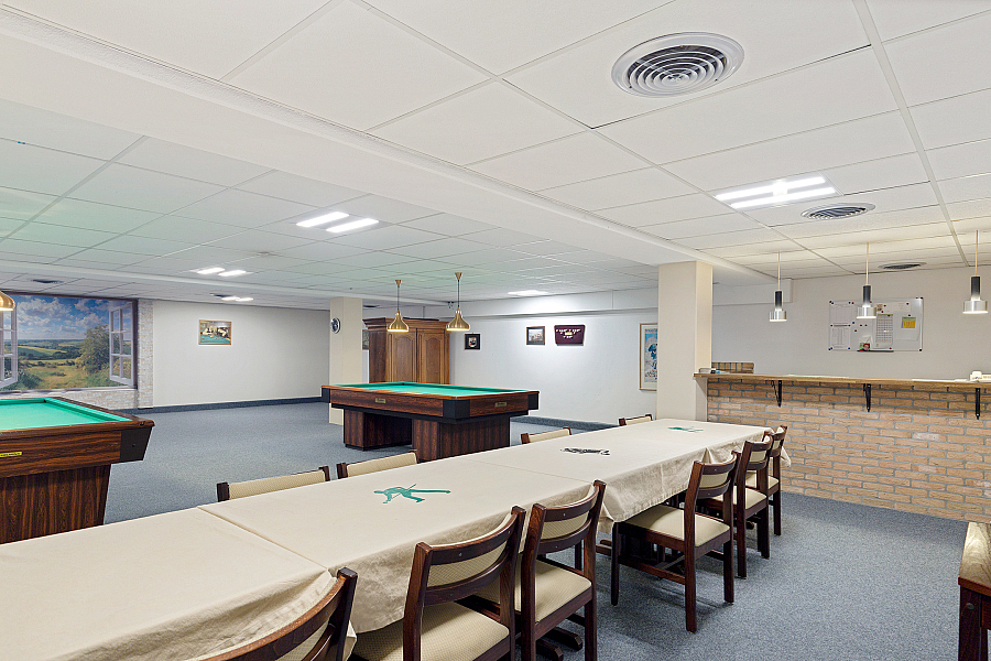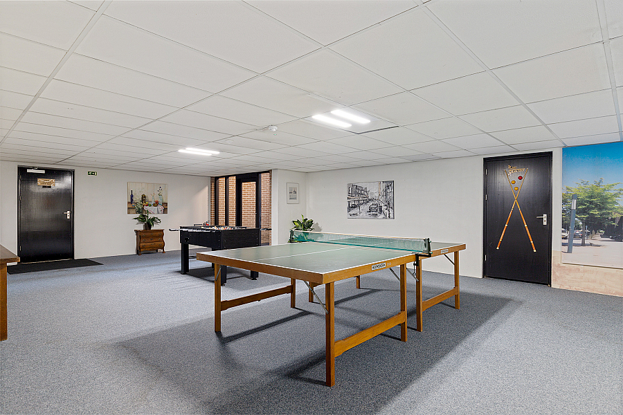 In de parkeerkelder bevindt zich een afgesloten, diepe en extra brede garage/berging met elektrische deur. Het complex biedt daarnaast diverse extra voorzieningen die het wooncomfort verhogen, zoals een zwembad, sauna, gezelschapsruimte, biljartzaal, enkele logeerkamers en een huismeester. De ligging is gunstig, op korte afstand van het oude centrum, diverse uitvalswegen, recreatiegebied en verschillende golfbanen.