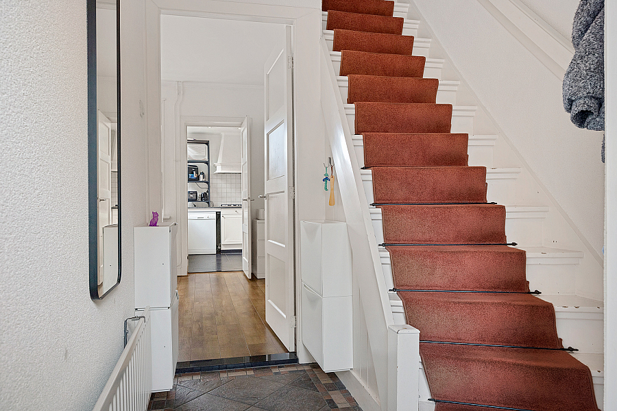 Entree, hal en toegang tot de woonruimte. De begane grond is praktisch ingericht en voorzien van de dagelijkse leefruimtes. Daarnaast is de woning uitgerust met mechanische ventilatie, tv-kabel en glasvezelaansluiting.